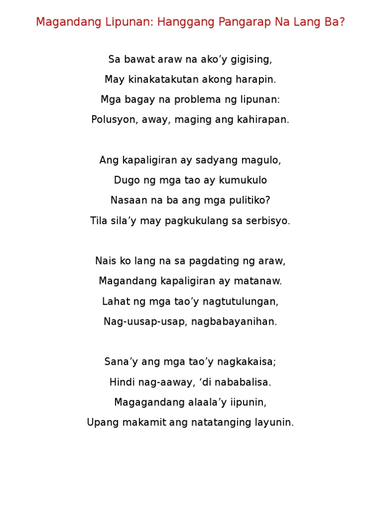 At lahat sayo ay parang nag lalaway. Mga pangyayari sa bayan. 10 Na Mga Halimbawa Ng Tula Tulang Pilipino.